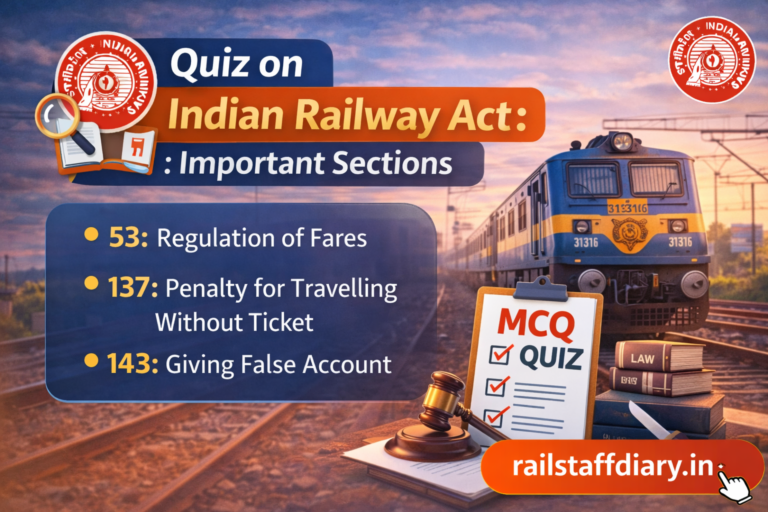 25 Most Improtant MCQs on Indian Railway Act : If you are preparing for the LDCE 30% Limited Departmental Competitive Examination, mastering the Railways Act is a non-negotiable part of your syllabus. Quiz on Indian Railway Act. The Commercial Department’s…